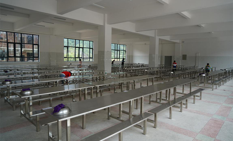 現(xiàn)在食堂嶄新的餐桌椅
