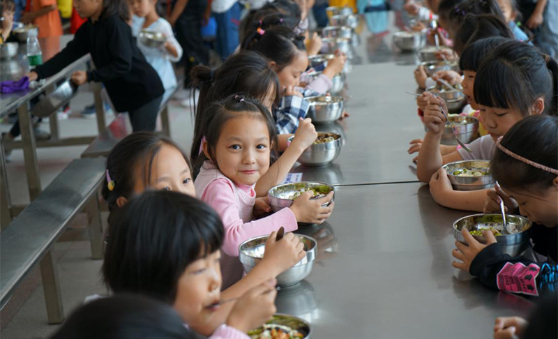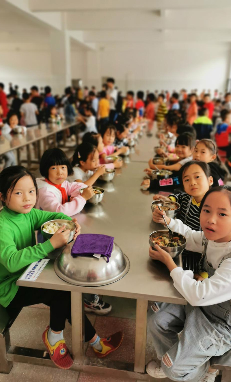湖南省安化縣奎溪鎮(zhèn)完小現(xiàn)有13個(gè)教學(xué)班,學(xué)生592人,33名教職員工。以前由于學(xué)校食堂太小、餐桌破爛不堪,而且沒有凳子,學(xué)生們只能分批次就餐,二十幾個(gè)孩子圍在四張拼在一起的餐桌旁站著吃飯。為了解決孩子們的就餐環(huán)境,學(xué)校通過各種努力貸款新修建了學(xué)校食堂,新學(xué)期已投入使用,但舊的餐桌已無法繼續(xù)使用。為保障孩子們能有一個(gè)干凈整潔、溫馨如家的食堂,長房集團(tuán)“藍(lán)絲帶”愛心傳遞基金向奎溪鎮(zhèn)完小捐贈了70套不銹鋼餐桌椅,徹底解決了孩子們“站著吃飯”的問題。