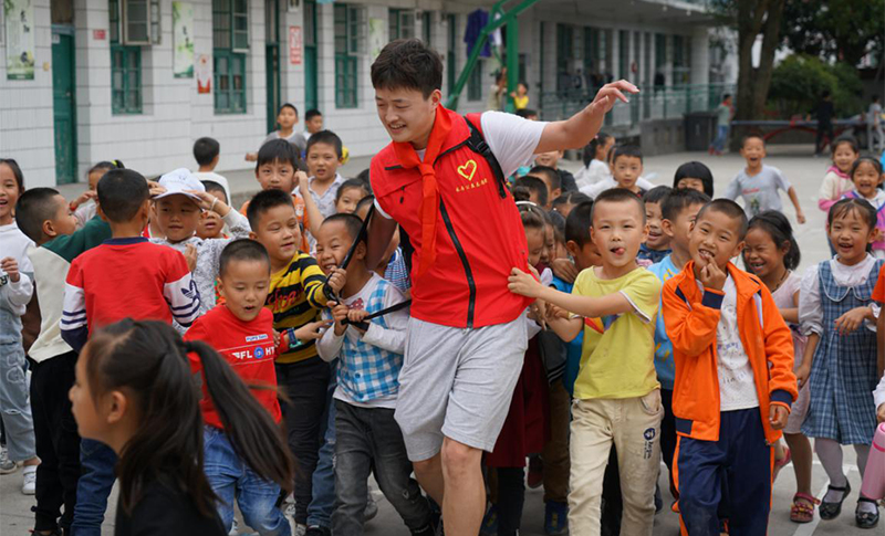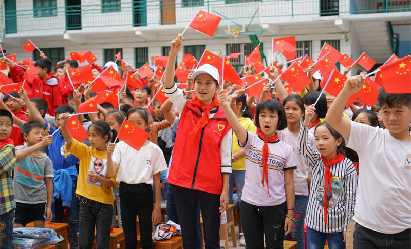 志愿者與孩子們齊唱《我和我的祖國》